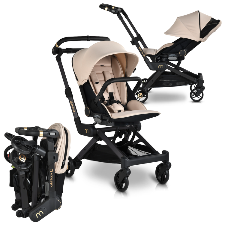 From newborn to toddler, the M+ adapts with infant car seat, bassinet, and stroller seat compatibility on one compact frame.